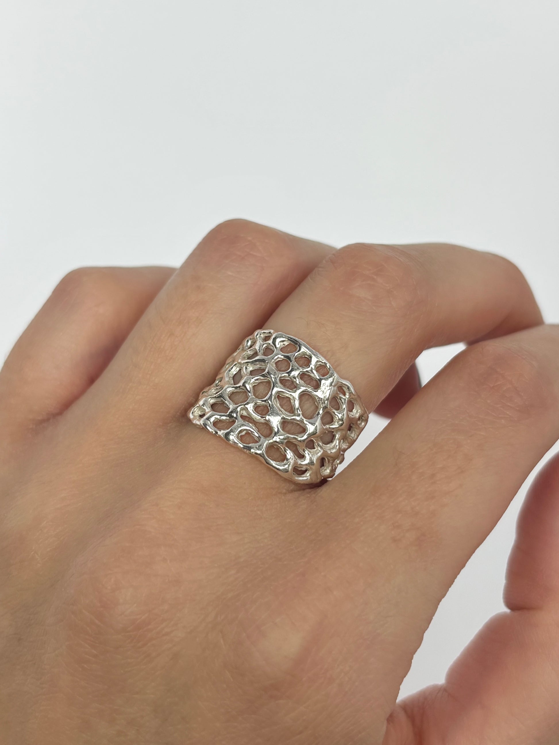 Anillo de plata 950 elaborado con la técnica de cera perdida.