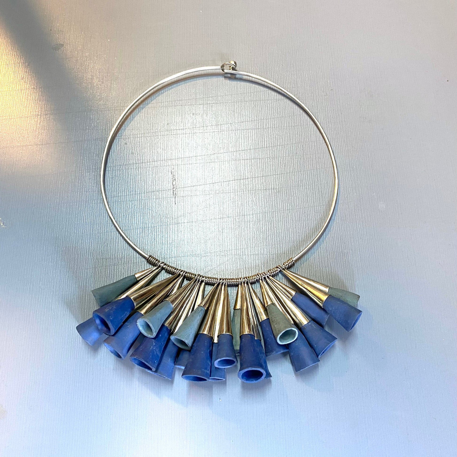 Collar racimo de 25 conos de porcelana y plata 950, cuello de alambre sólido y cierre de emboque.