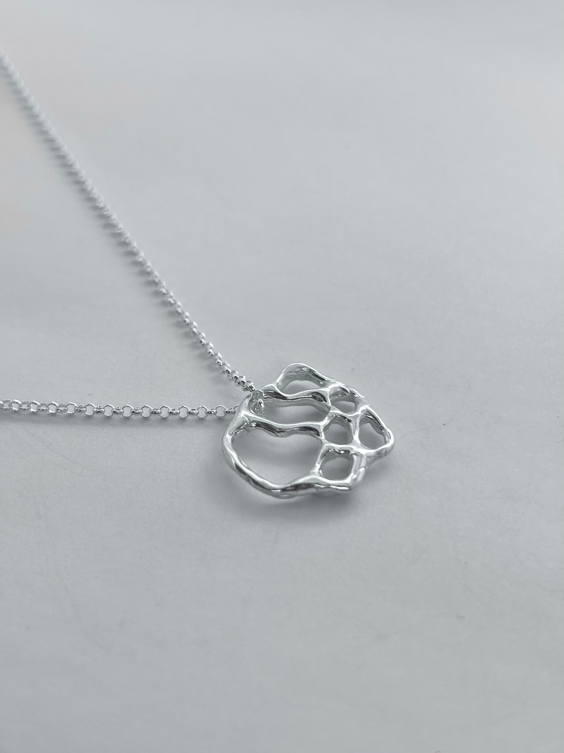 Colgante en plata 950 elaborado con la técnica de cera perdida.